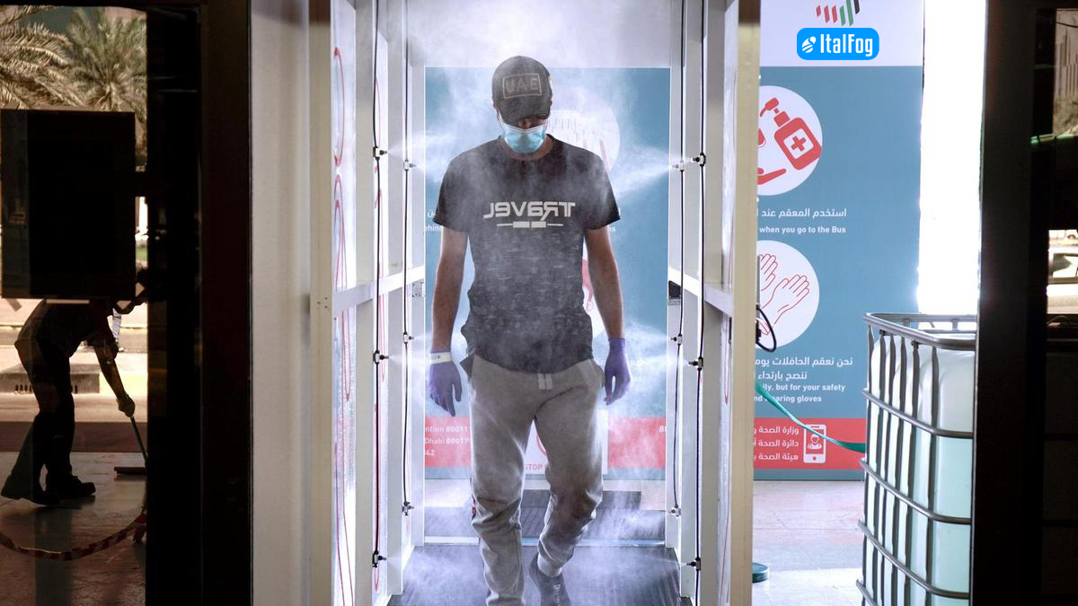 I kit di nebulizzazione ad impianto fisso sono stati concepiti per creare tunnel di disinfezione.